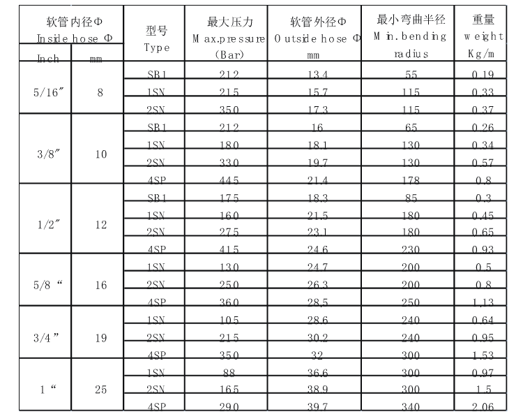 2SN:合成橡膠2層鋼絲編織加強層軟管 | Synthetic rubber with 2 steel braid reinforcement 。